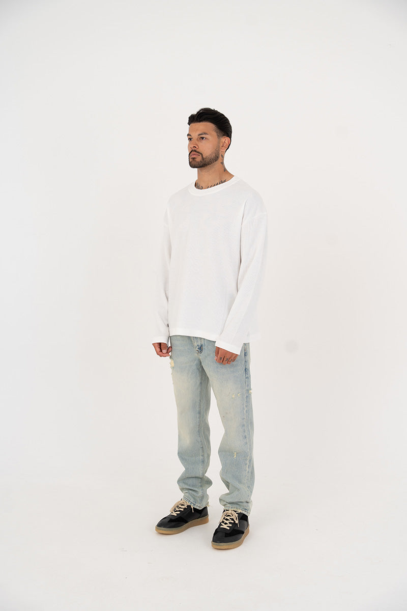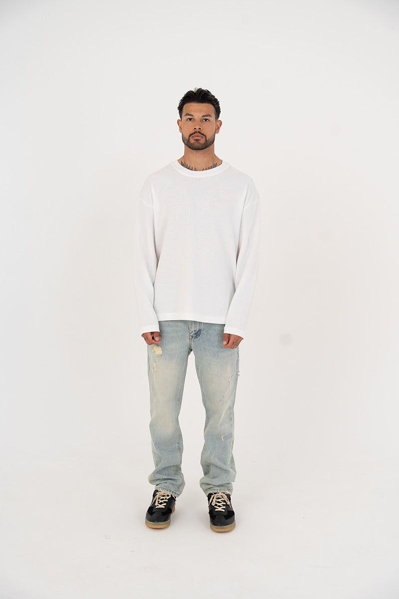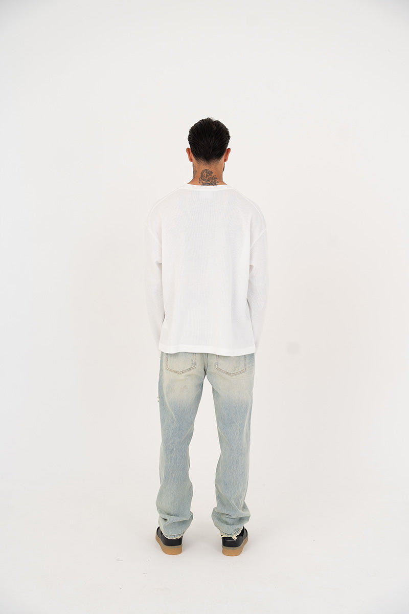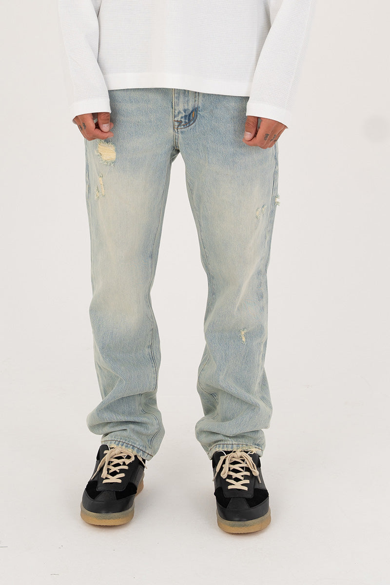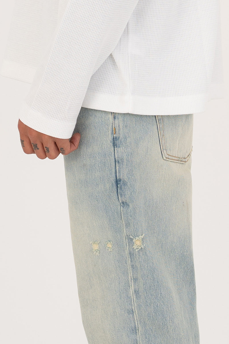 Designed to recreate the perfect fitting Levi's of the late 90s, the iconic relaxed, straight leg fit. The Marvotti denim collection launches with a vintage light blue wash, in my opinion the most versatile colour. Distressing throughout.