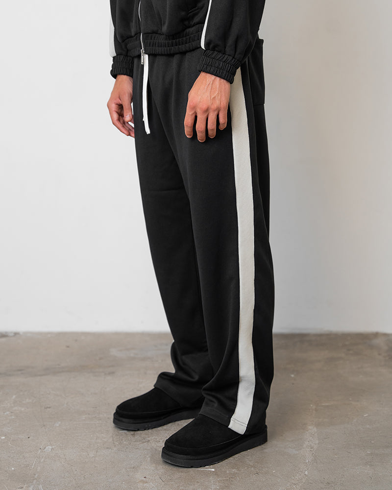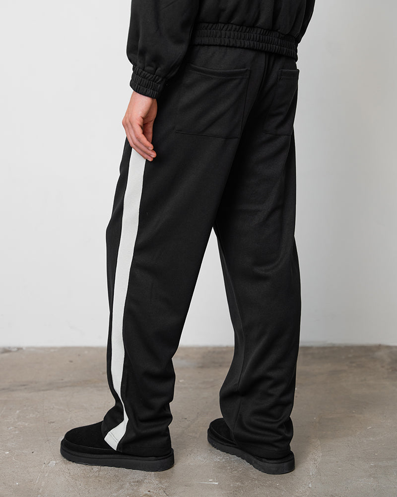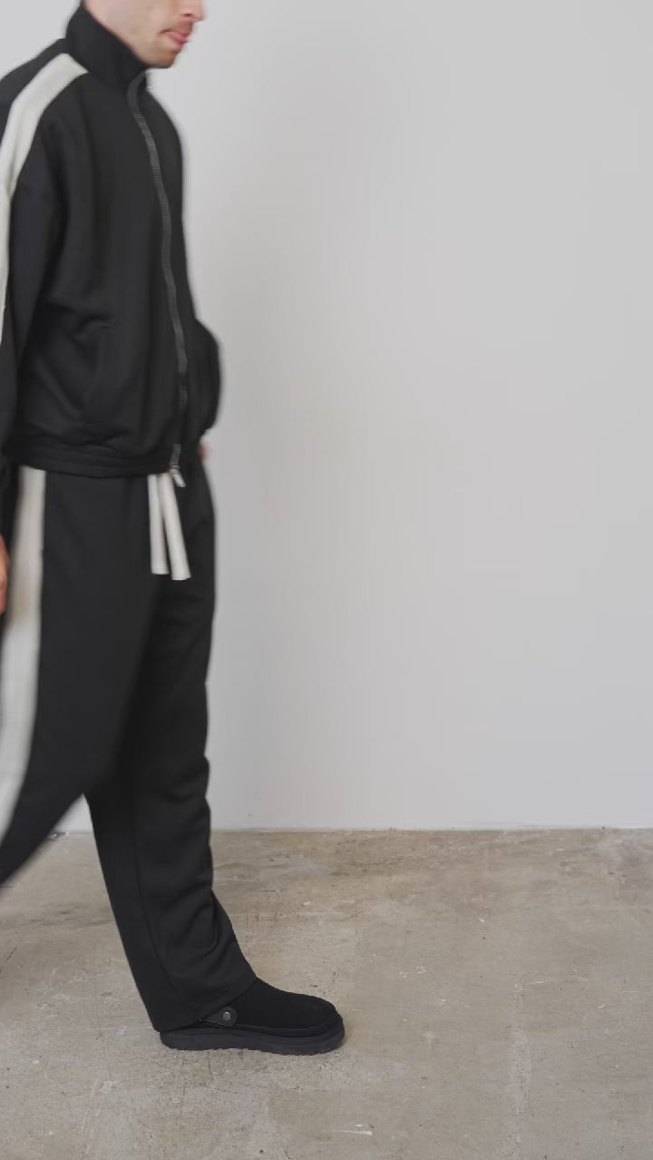Made from a luxury interlock fabrication, this straight leg classic track pant drapes and sits perfectly on any shoe. Features a woven label on the outer leg
