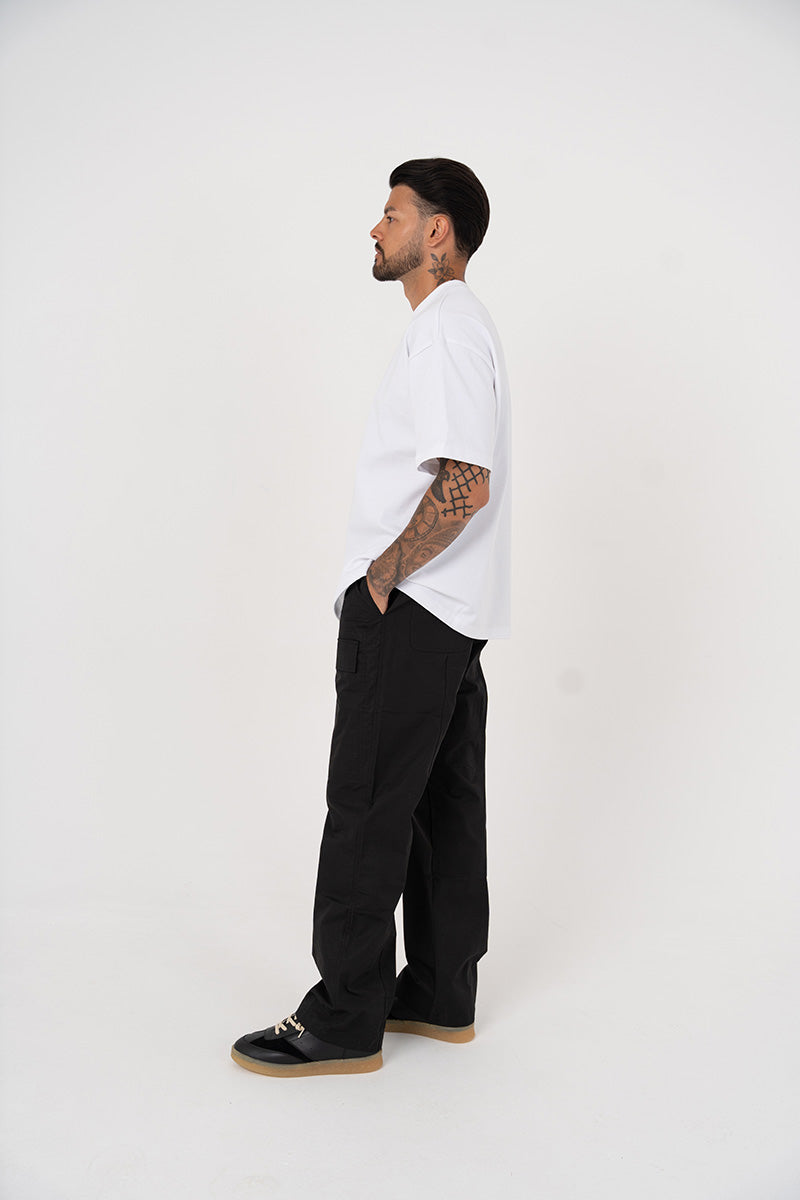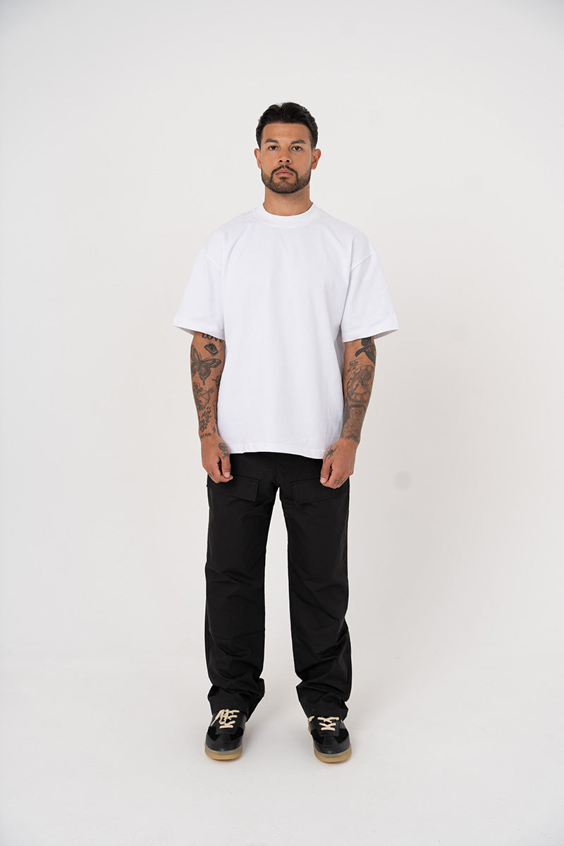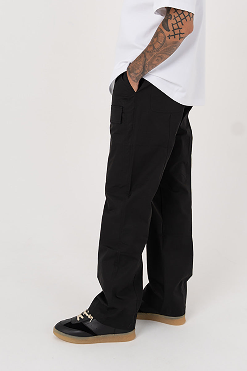 Taking inspiration from our signature straight leg cargos, this mid weight cotton/nylon cargo is built to stack on the shoe. Constructed in a special matte look cotton/nylon woven fabric with a straight leg cut and knee darting.